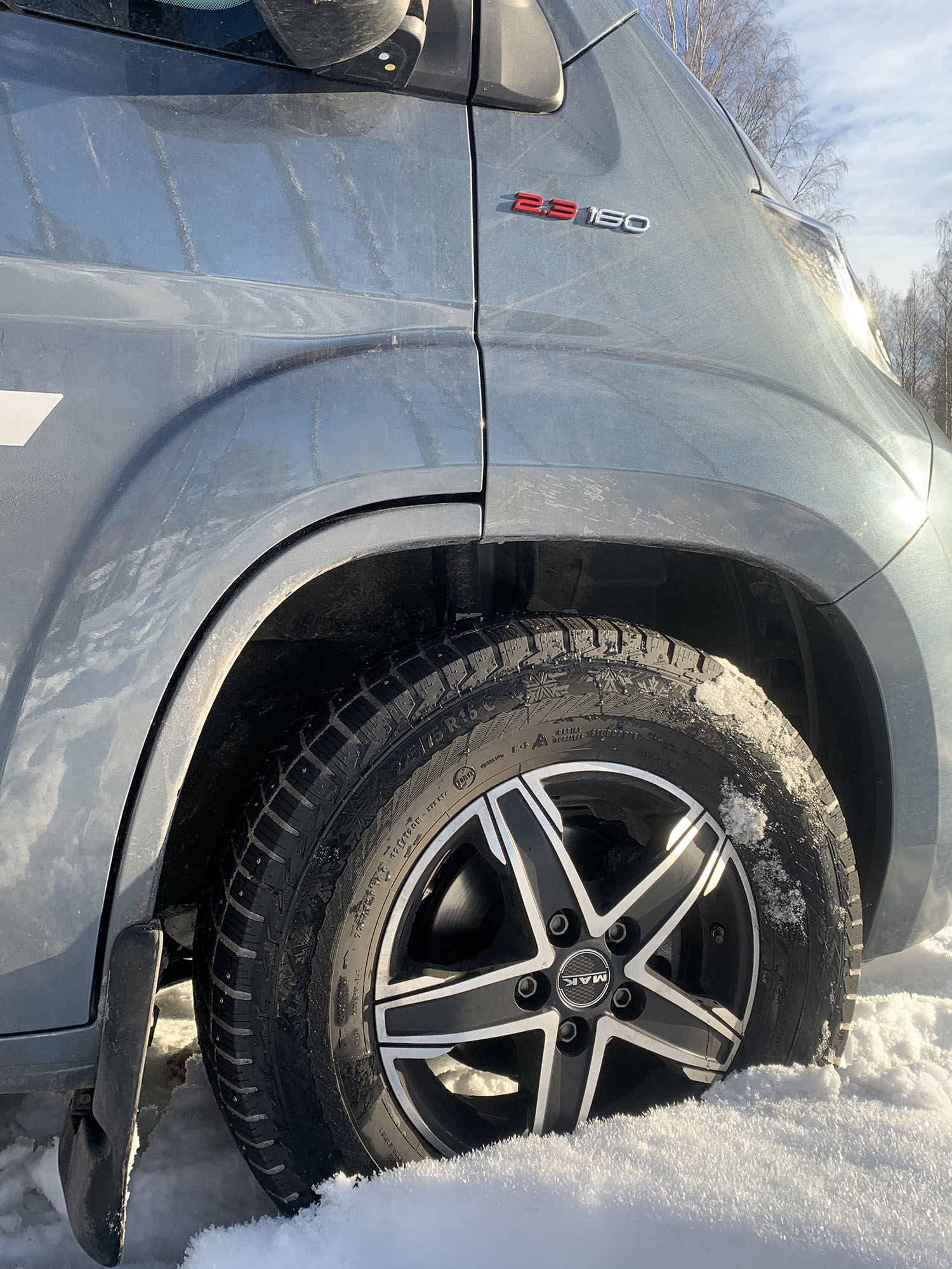 Für uns sind Winterreifen mit Spikes während unserer Reisen ein Muss, da wir lieber auf weniger befahrenen Straßen unterwegs sind und uns auf die Traktion und Bremsleistung verlassen wollen. Temperaturen um -20 bis -25 Grad waren in den letzten Wochen keine Seltenheit. Unter solchen Bedingungen ist es entscheidend, dass die Gummimischung der Reifen ihre Haftung behält und das Profil auf Schnee und Eis gut funktioniert.