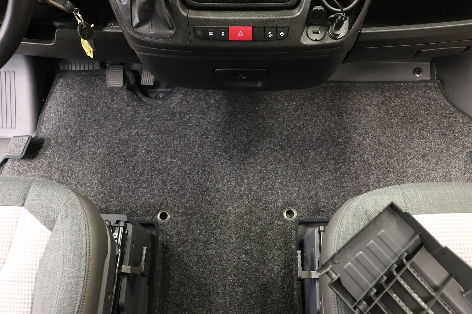 Bei früheren Wohnmobilen haben wir die Erfahrung gemacht, dass der Bereich um den Fahrer- und Beifahrersitz oft schlecht isoliert und daher eine echte Kältequelle ist. Der Boden ist oft völlig unisoliert, was das gesamte Wohnmobil erheblich auskühlt. Wir haben dieses Problem durch den Einbau einer Heizmatte von Alde gelöst. Die Matte ist an die reguläre Heizungsanlage angeschlossen, wodurch warmes Glykol durch die Matte zirkuliert. Wenn Sie einen Wärmetauscher installiert haben, sorgt dieser sowohl während der Fahrt als auch beim Campen für ein warmes und gemütliches Gefühl. Unsere Erfahrungen damit sind bisher sehr positiv!