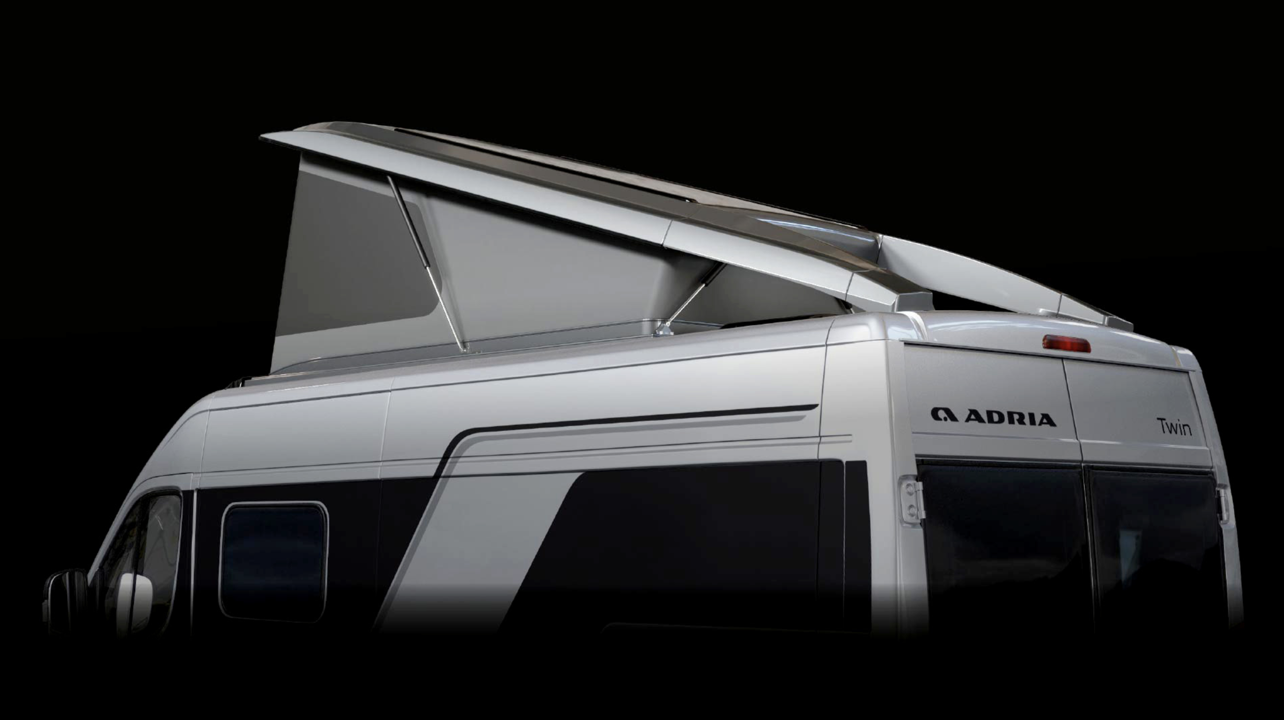 ein innovatives und gleichzeitig funktionales Aufstelldach, das aus leichtem Verbundwerkstoff besteht und eine moderne und Adria exklusive Formensprache hat. Zudem fügt sich aerodynamisch in die Karosserie des Twin Sports ein!