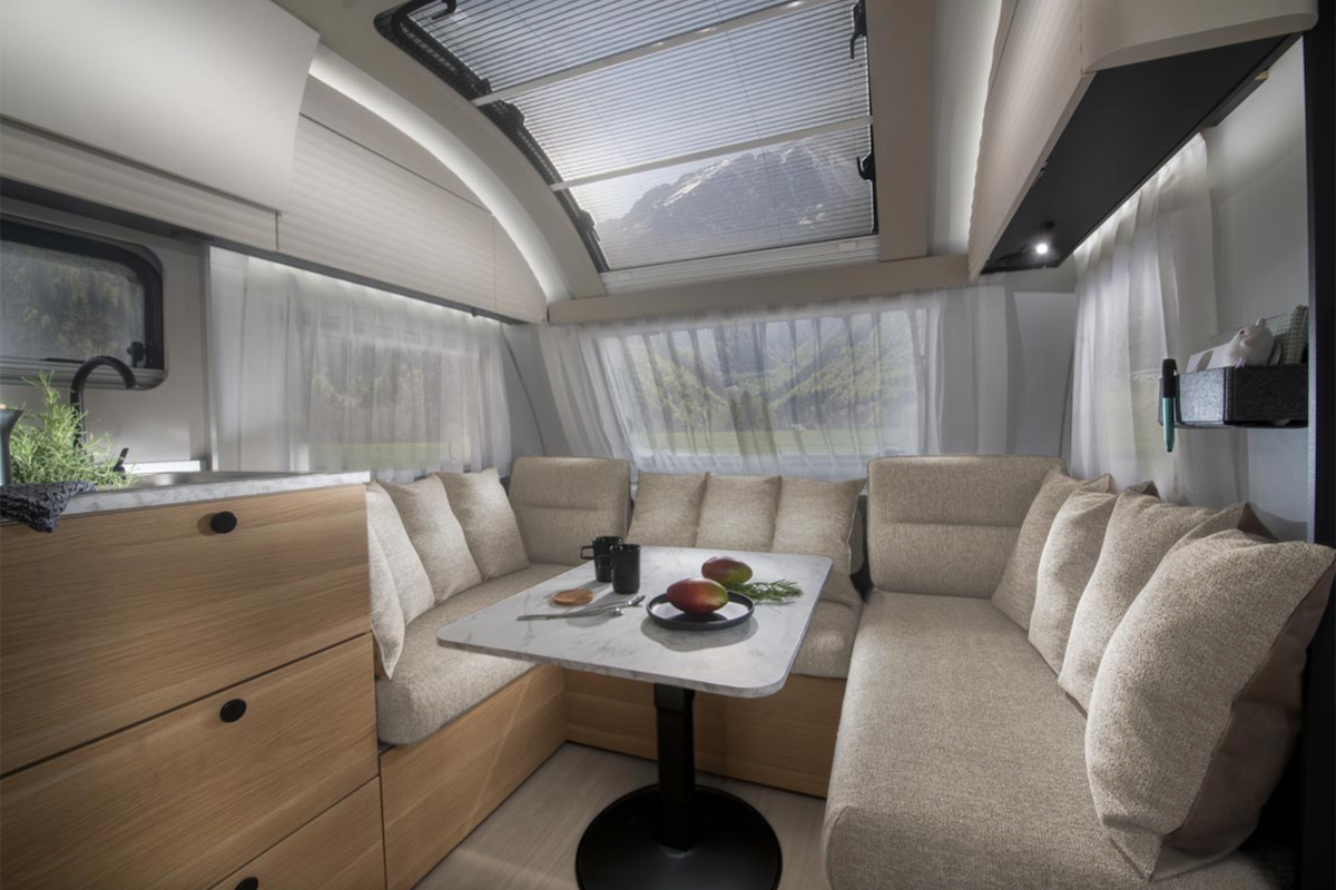 Unter der Oberfläche finden sich Optimierungen: Die GFK Karosserie wurde mit Verbundlatten in den Wänden verstärkt, PVC-Leisten um die Fenster, einem stärkeren XPS-Dach- und -Bodenkern mit Polyesterschicht. Das Ergebnis: mehr Stabilität, Haltbarkeit und insgesamt eine noch bessere Performance – zusammen mit der 10-Jahres-Dichtigkeitsgarantie ein gutes Gefühl.