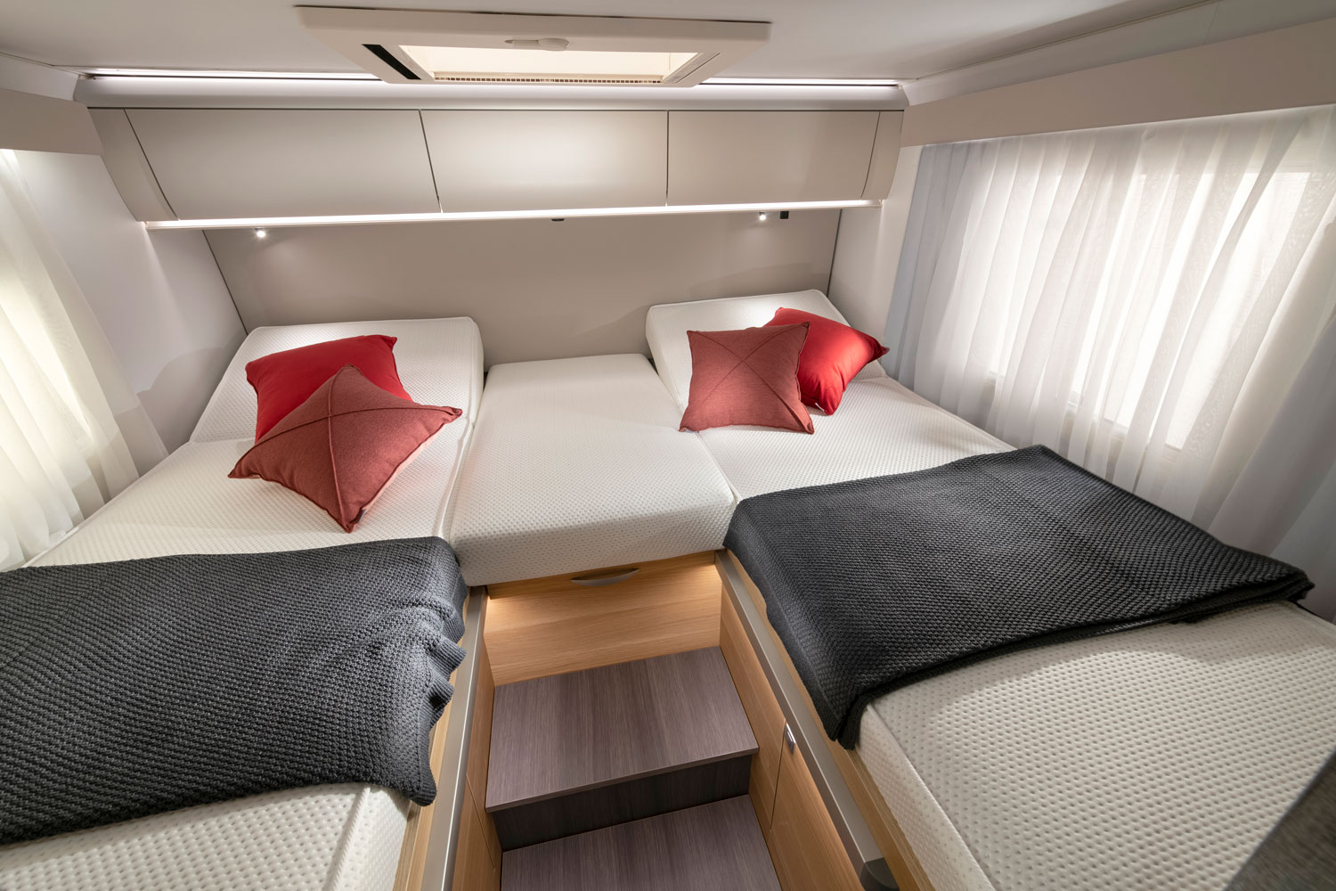 Alle Wohnmobile verfügen über einen Doppelboden, der durchgehend eine ebene Fläche bietet, sowie 13 cm Unterbodenfläche für integrierte Versorgungseinrichtungen, Isolierung und zusätzlichen Stauraum. Die stoßfesten Frischwassertanks sind für die Fahrzeugbalance und das Handling optimal platziert, aus einem Stück gefertigt und sorgen so für dauerhaft dichte Leistung sowie sind über den Doppelboden leicht zugänglich.